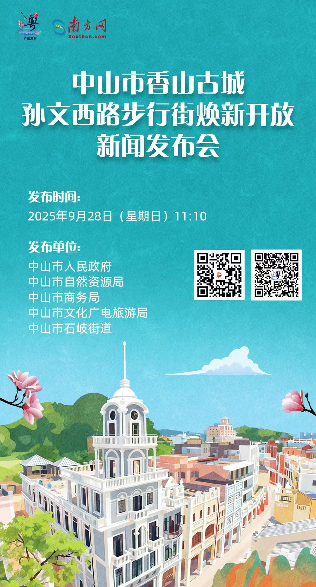 省新闻办拟于9月28日举办中山市香山古城孙文西路步行街焕新开放新闻发布会,邀请中山市副市长杨海东及中山市文广旅局、自然资源局、商务局、石岐街道主要负责人参加发布会并答记者问。