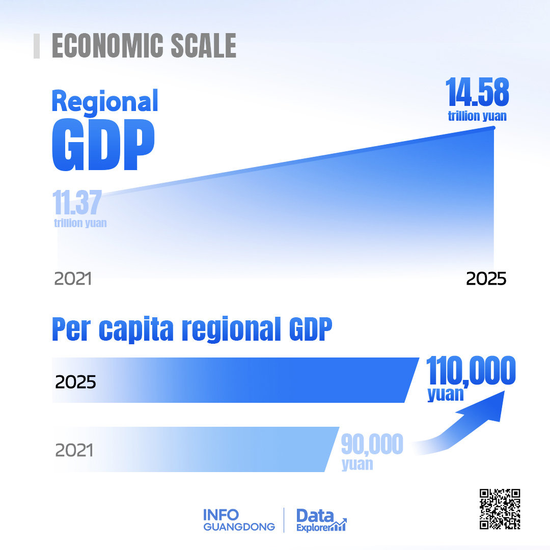 2026 marks the start of China's 15th Five-Year Plan, as Guangdong wraps up the 14th Five-Year Plan period with remarkable achievements. The province's regional GDP hit 14.58 trillion yuan, with per capita regional GDP reaching 110,000 yuan.