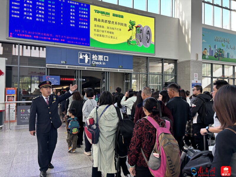 高铁三水南站站长刘栋杰表示,秋假期间,车站将持续关注客流变化,动态调整服务保障措施,始终坚持以旅客需求为导向,展现高铁车站文明窗口形象,全力以赴确保广大旅客平安、有序、温馨出行。